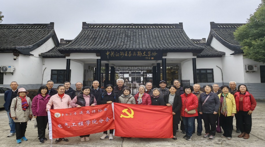 电气工程学院退休教职工党支部于11月18日组织支部成员前往泰兴参观了中共江浙区泰兴独立支部旧址纪念馆。尽管初冬的寒意渐浓,大家却热情似火,情绪饱满,展现出对历史的尊重和对文化的热爱。泰兴籍的李扬老师回故乡很是激动,一路兴致勃勃地给大家介绍泰兴的特产、方言,让大家对泰兴有了更深入地了解。